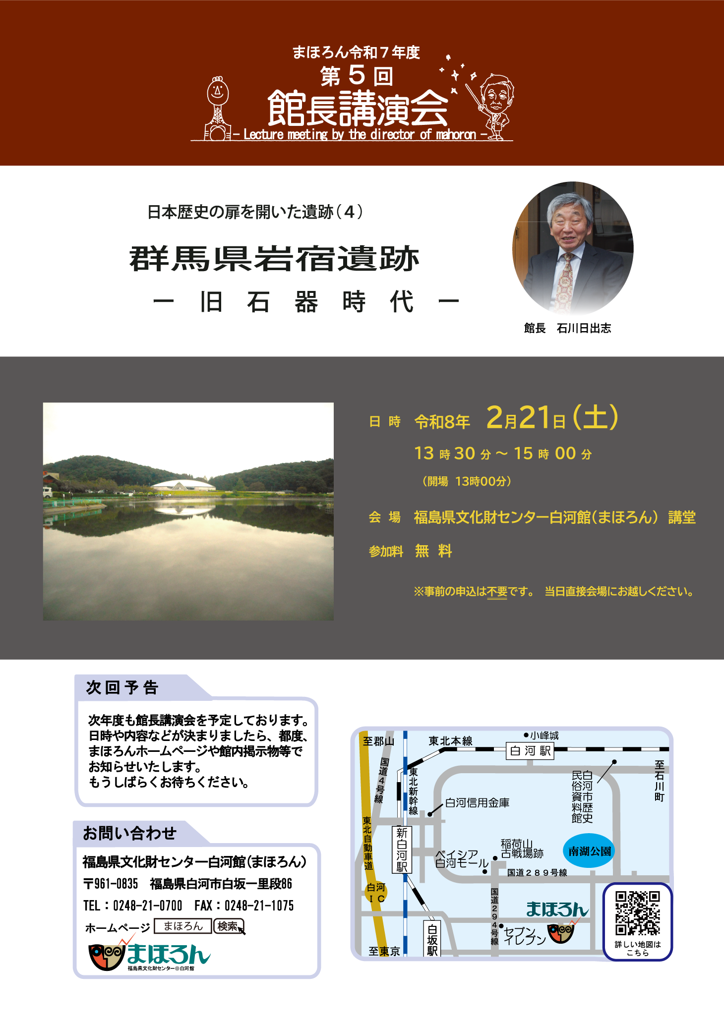 企画展「ふくしまの縄文・弥生時代ー只見川流域の遺跡ー」に出展している三島町小和瀬遺跡における発掘調査の概要を紹介するとともに、企画展の解説会を行います。