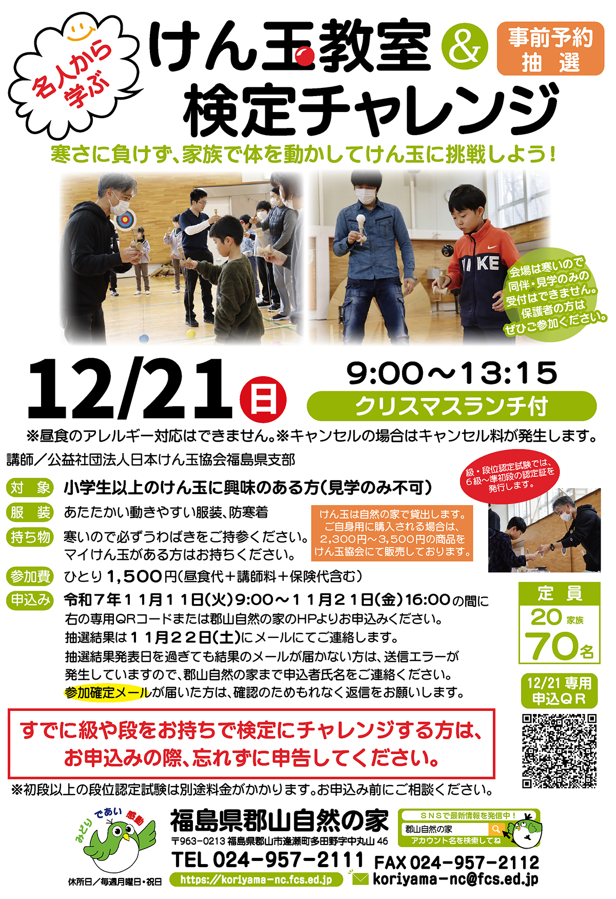 寒さに負けず、家族で体を動かしてけん玉に挑戦しよう!